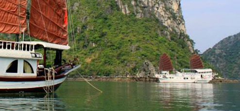 traditional cruises in Halong bay. The junks are